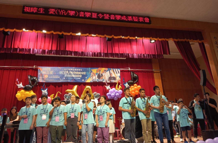 【記者林獻元台中報導】2025年全國視障生愛樂/YA音樂夏令營於8月11至14日在台中市立啟明學校展開,今年吸引近50位學員參與,13日晚上舉行成果發表會,指導老師們精心設計演出曲目,帶領學生認識爵士樂風格,並由專業歌唱教師-乃嘉老師教授唱歌技巧,結合多位樂器老師不同樂器演奏,展現學員的學習成效;在樂器分組教學中,更能讓學生透過團體合奏增進合作與聆聽能力,體驗音樂中「和而不同」的真諦。