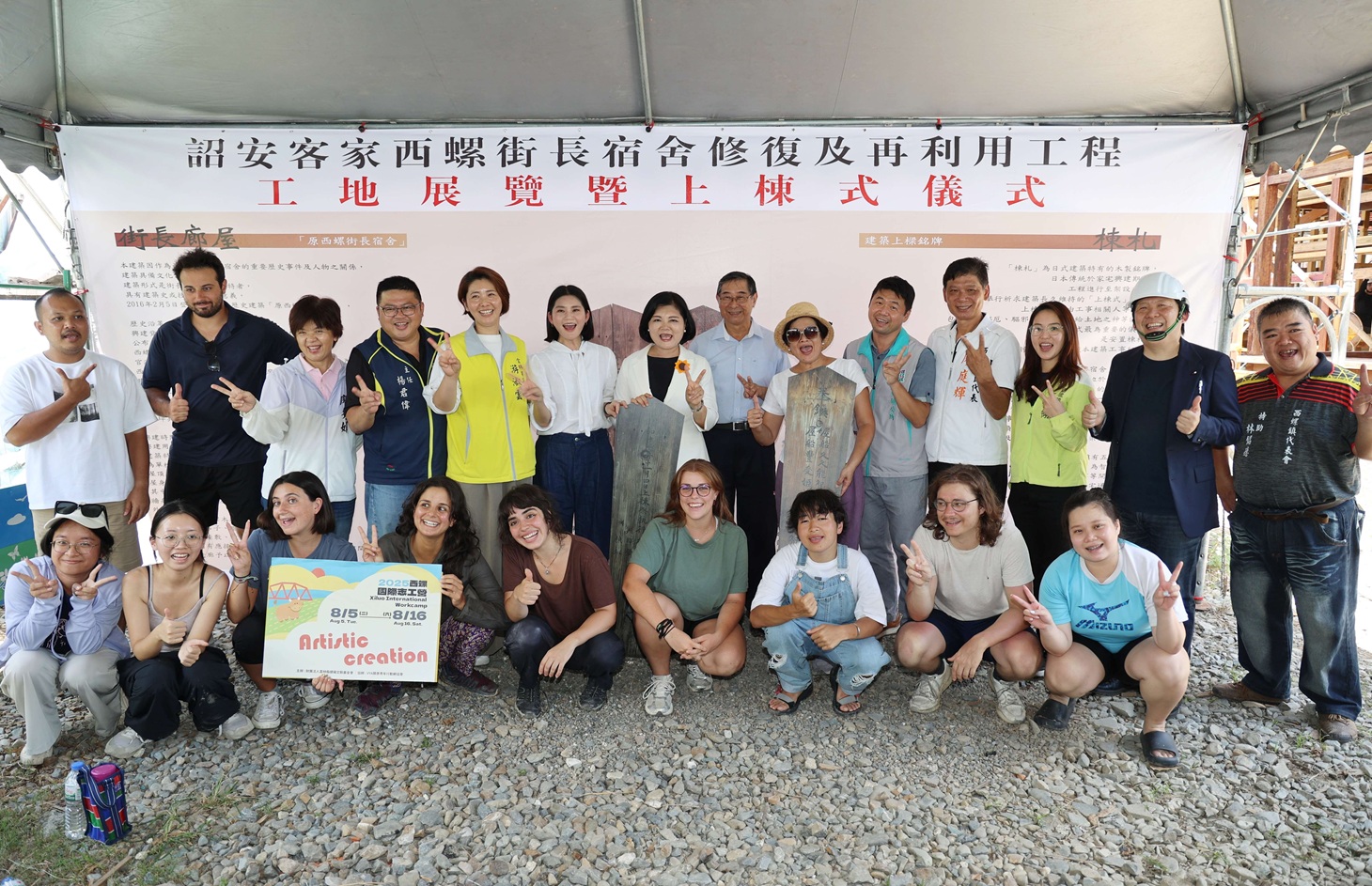 詔安客家西螺街長宿舍修復及再利用工程,今14日舉行工地展覽暨上棟式儀式,目前工程進度已達75%,預計114年11月完工。(圖/記者蘇峯毅攝)