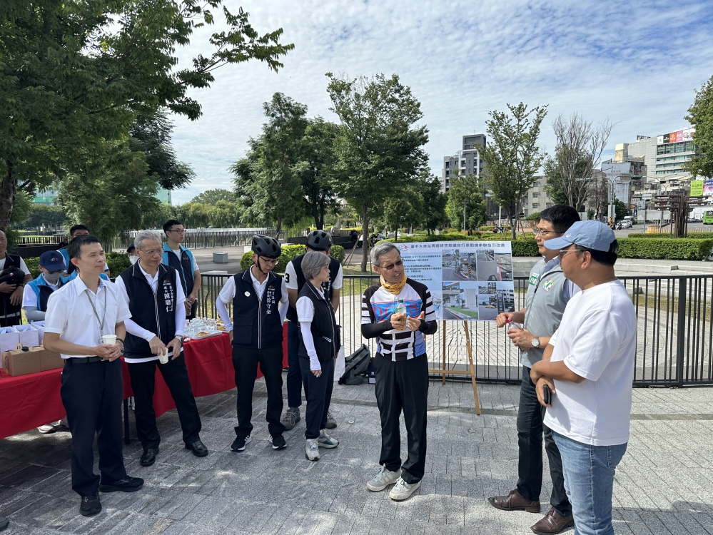 建設局長陳大田表示,感謝議員們一同參與自行車騎乘並提出寶貴建議,透過實地履勘,未來市府團隊將優先打通台中火車站車站專用區與保存區相接鄰的人行道牽行區(復興路至大智路段)。