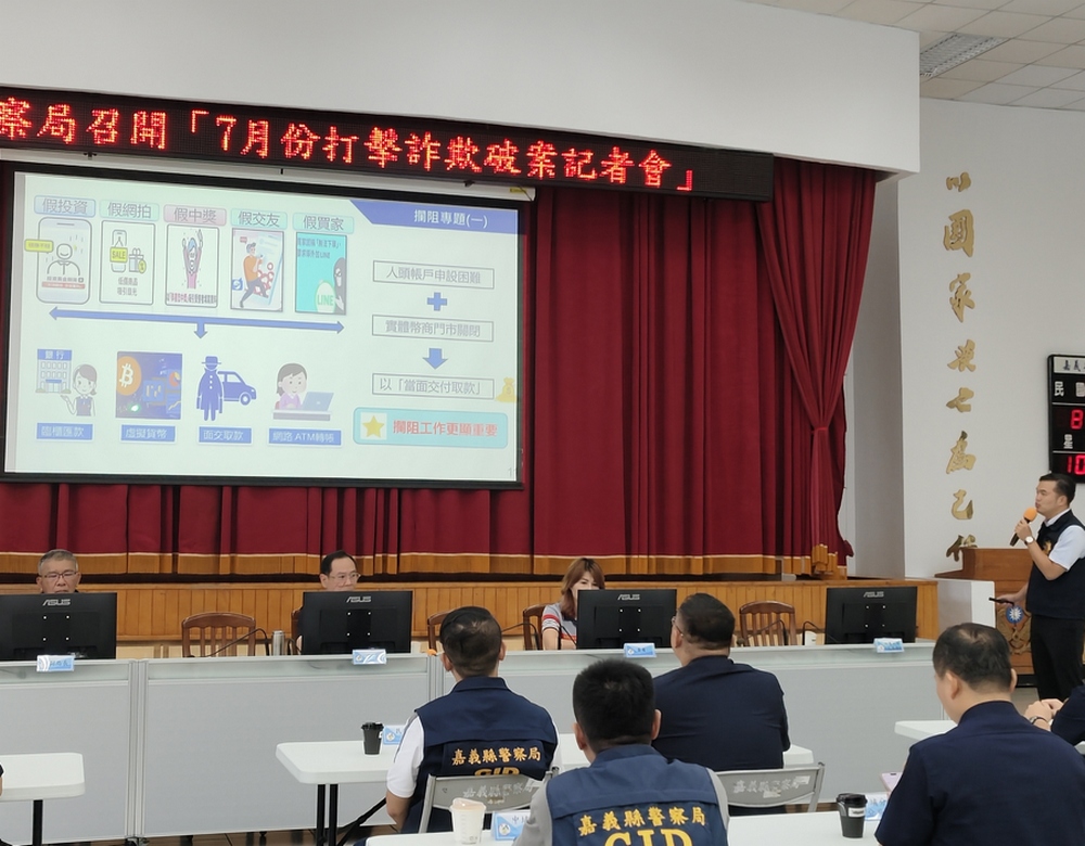 為擴大民眾關注反詐議題及提升民眾識詐意識,嘉義縣警察局於22日辦理「打擊詐欺犯罪成效破案說明會」,結合嘉義縣114年7月份詐欺情勢分析報告,彰顯該局打擊詐欺集團決心與作為,亦向縣民宣導防詐意識重要性,提升縣民識詐意識,守護民眾財產安全。