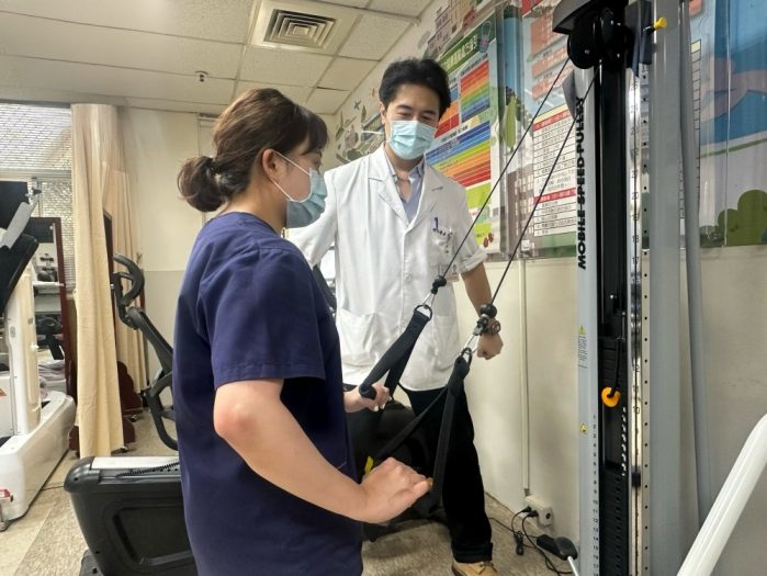衛生福利部豐原醫院日前成功幫助一位67歲的廖阿姨,十多年前因胸部疼痛就醫檢查發現早期乳癌,手術成功切除腫瘤後,出現手部腫脹等不適症狀,經復健科團隊詳細評估後,為她量身打造一套個別化復健計畫,結合關節活動訓練、肌力強化、淋巴引流、電刺激與心肺耐力訓練,改善乳癌術後十多年來的手臂腫脹痠痛、關節活動受限及無力感症狀,生活品質大幅提升,如今活力四射,經常與朋友聚餐遊玩,展現癌症術後復健對重建日常的重要價值。