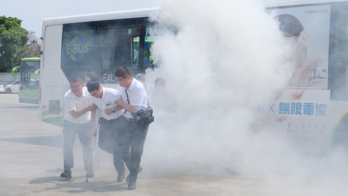 葉昭甫表示,為求演練逼真,特別請統聯客運協助安排車內有乘客的狀況,並加入一般乘客及行動不便乘客等條件,盼透過升級模擬情境,演練面臨各種突發狀況時的處理步驟,讓客運業者未來在對電動公車駕駛人教育訓練時,提醒面臨突發危機要能有序的進行乘客疏散避難,做出最正確高效的應變。