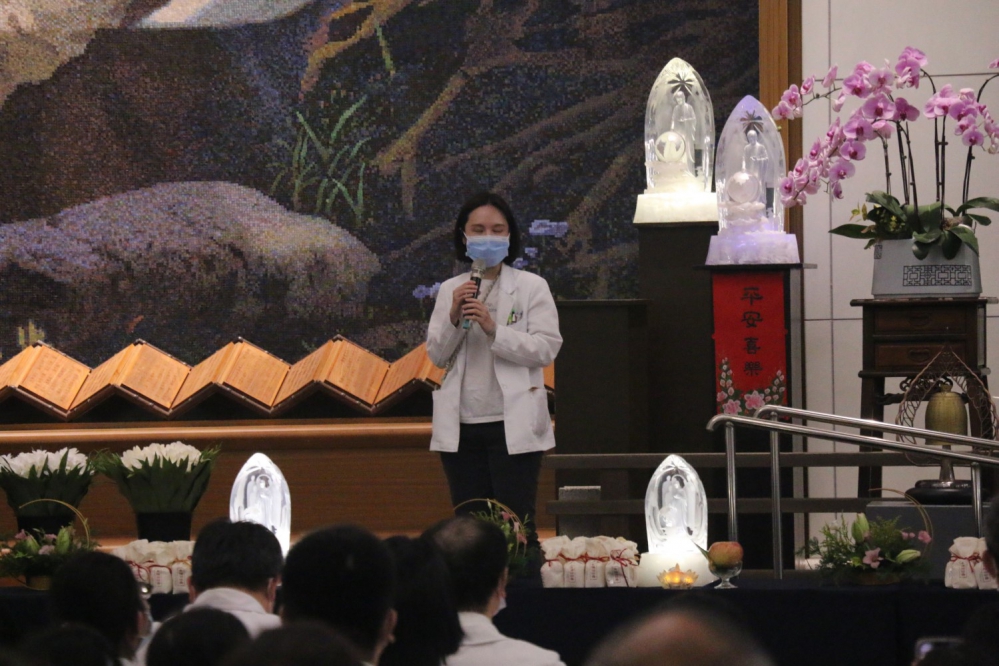 證嚴法師開示影片也呼籲蔬食共善念,造福得平安!環境與世局的變化,提醒大家要時時警惕自省。簡守信院長表示:「藉由祈福晚會,不僅體悟個人應如何付諸行動,更提醒醫護同仁專注醫療專業外,更要關注整體醫療環境轉變。唯有從自身內心出發,讓善念產生漣漪效應,才能擴散祝福的力量」。