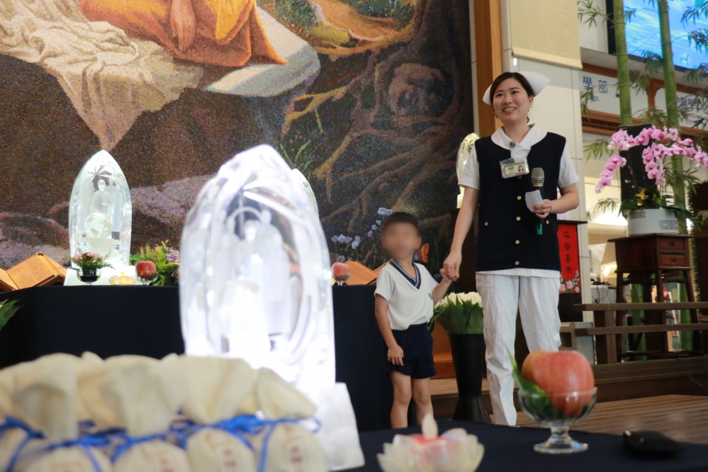 農曆七月是歡喜、吉祥、孝親月,台中慈濟醫院藉由「祈福會」活動,以正知、正見、正念態度,宣導茹素不殺生,愛心普及眾生。近三百人踴躍出席,坐滿台中慈濟醫院大廳。花蓮靜思精舍德佺師父、德愔師父率簡守信院長及醫護人員獻供燈、花、果,禮敬諸佛,醫療行政團隊戒慎虔誠祈福。德佺師父開示:有福知的人更要造福,才能有祥和社會,讓天地間和平相處。