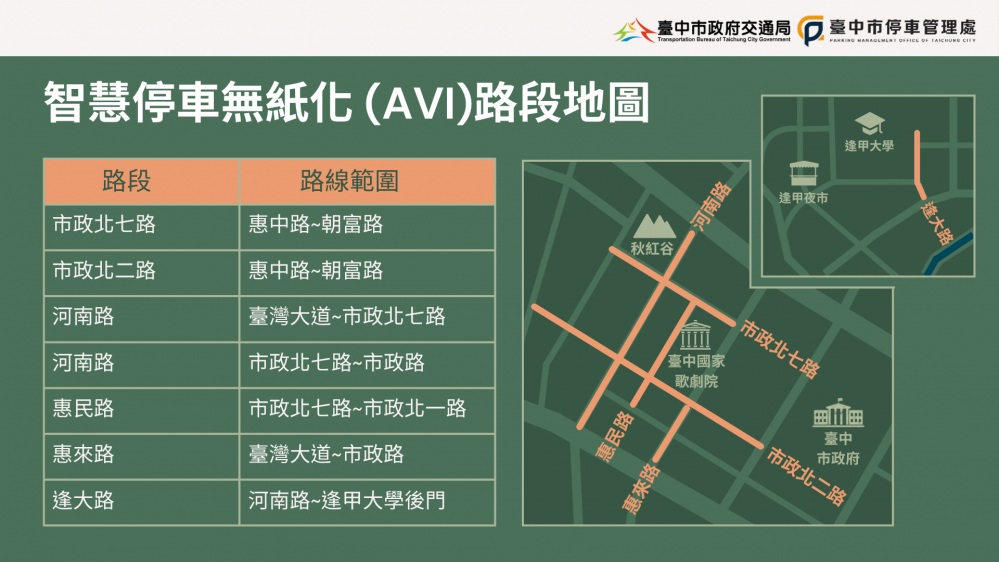 因應9月8日政策上線,交通局也將自8月中下旬起展開多元宣導,包括設置路邊告示牌、於車輛夾放宣導單、派員繞巡說明,以及透過台中市停車管理處網站「智慧停車無紙化(AVI)專區」與交通局官方粉絲專頁發布訊息,協助市民提前熟悉繳費方式。