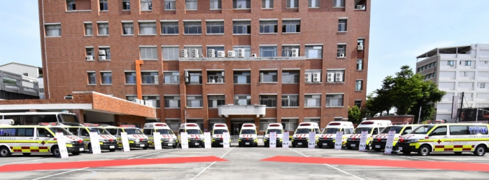 全國救護日,消防局在警局中庭舉辦﹁美好彰化,感謝有您---2025年救護車聯合捐贈儀式」,由縣長王惠美代表接受21位捐贈者合捐的13輛全新救護車。