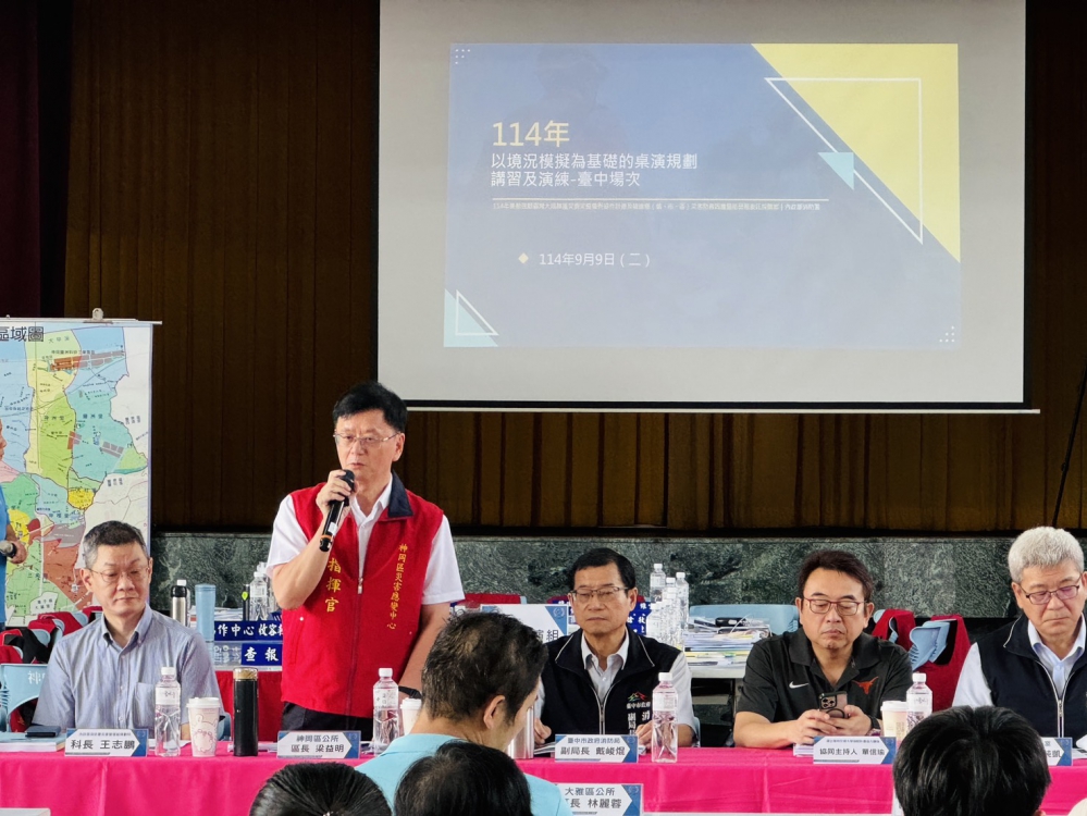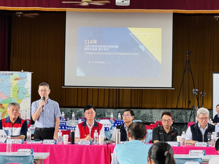 【記者林獻元台中報導】為提升地方政府面對大規模地震的整備與應變能力,台中市政府9日在神岡區公所大禮堂辦理「114年度地震災害桌上兵棋推演」,此次活動由市府消防局及神岡區公所承辦,並由內政部消防署科長王志鵬及消防署強韌計畫協力團隊單信瑜教授共同指導,活動邀集轄區內各防救災相關單位共同參與,模擬地震災害發生後之應變處置作為。