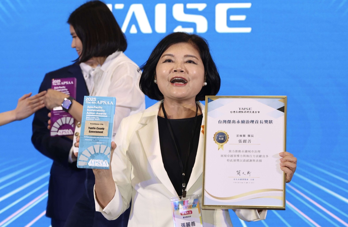 【記者蘇峯毅/雲林報導】2025台灣永續行動獎(TSAA)與亞太永續獎(APSAA)日前揭曉,雲林縣政府再度蟬聯全國最大贏家,縣府與所屬局處合計奪下37座獎項,展現縣府在永續治理的深厚實力與全方位成果。縣長張麗善榮獲「台灣傑出永續治理首長獎-地方組典範」,副縣長謝淑亞則獲「頂尖永續長獎」,縣府並首次摘下「宜居永續城市獎 Excellent City」,彰顯雲林在社會包容、低碳轉型、氣候行動等面向的卓越表現。