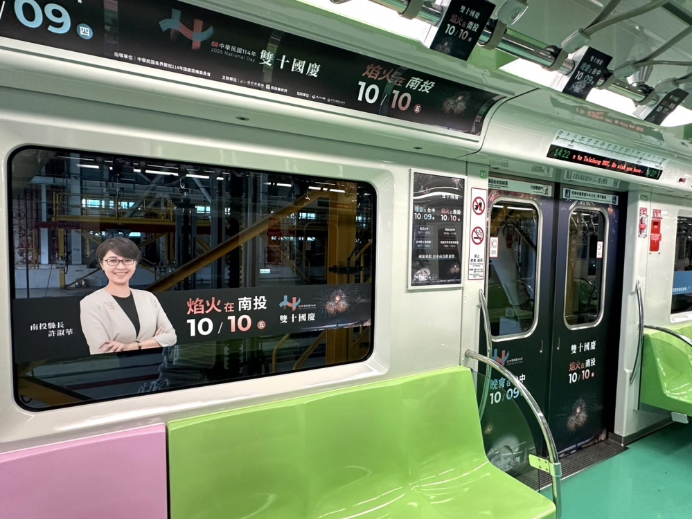 中捷公司指出,今年國慶「晚會在台中、焰火在南投」,勢必吸引全國及海外民眾齊聚中台灣,中捷特別從捷運高鐵台中站1號出口開始布置迎賓主視覺,並在月台門張貼醒目的晚會及焰火日期資訊,誠摯邀請所有旅客共襄盛舉。