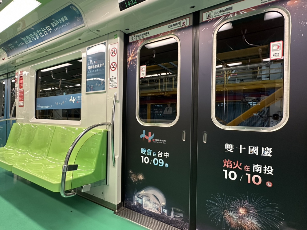 【記者林獻元台中報導】睽違8年,國慶晚會將於10月9日在文心森林公園圓滿戶外劇場盛大登場。為迎接這場盛事,台中捷運公司自12日起推出國慶彩繪車廂,以雙十國慶主視覺為核心,結合梅花、繽紛焰火等設計,營造喜慶熱鬧的氛圍。中捷公司表示,文心森林公園站鄰近會場,搭乘捷運參加晚會最方便,還能愜意欣賞一連串精彩表演。