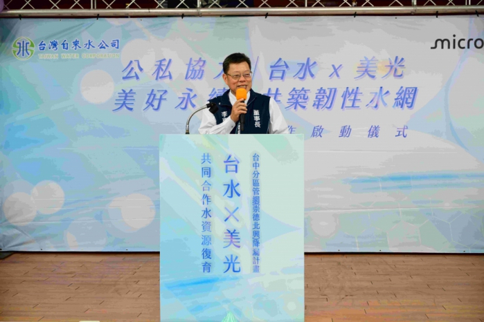 台水董事長李嘉榮指出,台中市漏水率13%,高於全國平均11%,其中,北屯區進化北路崇德路和太原路一段的小區域,管線五公里,每天供水量七千四百多噸,售水量只有一千兩百四十五噸,等於一天流失六千多噸自來水,漏水率達83%。感謝美光捐贈4710萬元,支持台水推動崇德地區老舊管線更新,預計明年底完成,售水率可望提升至九成。