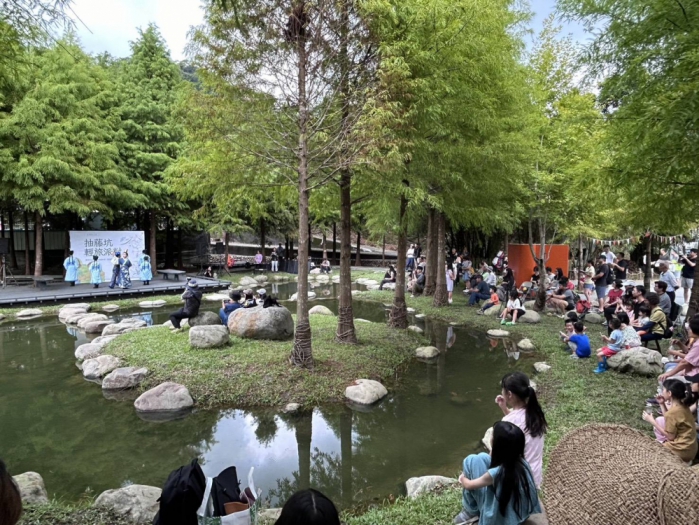 抽藤坑休閒農業區邱志威理事長說明,抽藤坑的蛙境公園透過整體規劃,已轉型為「永續生態戶外教室」,結合全齡友善設計,不僅適合親子踏青,也成為青年創新、傳統技藝與生態教育交織的舞台,此次活動也讓遊客實際體驗農村生活的多樣面貌,從茶席品茗、市集互動到傳統歌仔戲欣賞,都呈現出農村觀光的新價值。