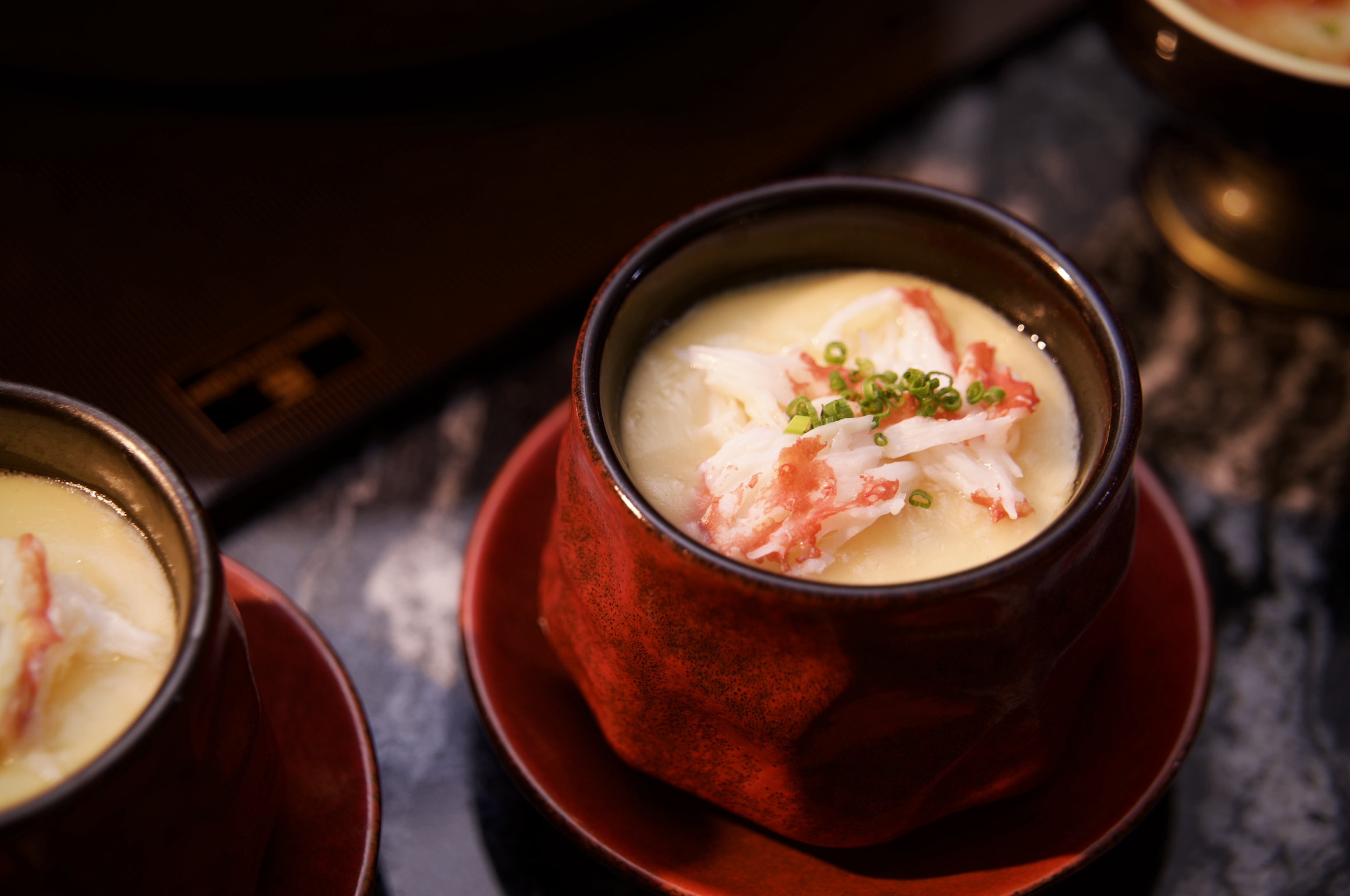 (圖說)「帝王蟹肉蒸蛋」入口軟滑、香氣四溢。二本松提供
