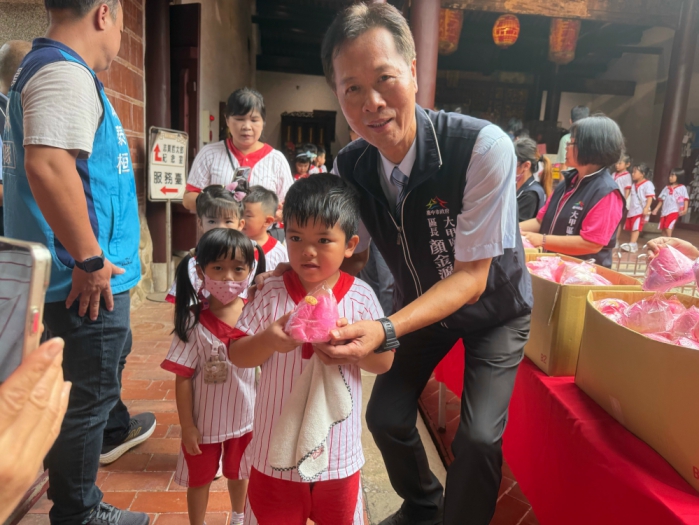 儀式結束,顏區長立即與來賓分送參與祭典各界、民眾及學生們壽桃,並在廣場備有平安湯圓供民眾品嚐,祈望大家品嚐後,身體健康,家境平安,場面頗為溫馨。