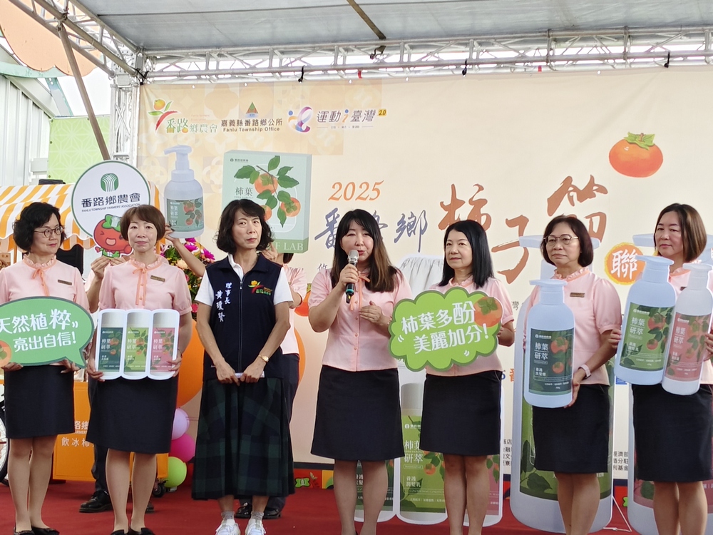 番路鄉盛產柿子聞名,今年ˊ以「悠遊番路.柿季茶鄉」為主題舉辦柿子節。(圖/記者任芳葵攝)總幹事趙幸芳強調,今年的專利技術與新品上市,展現農會推動創新的決心。柿葉洗沐系列凸顯副產物再利用與循環經濟價值;神木站紀念啤酒展現跨界合作魅力;新型脫澀技術則為柿子產業注入新動能,有助穩定價格並提高農民收益。
