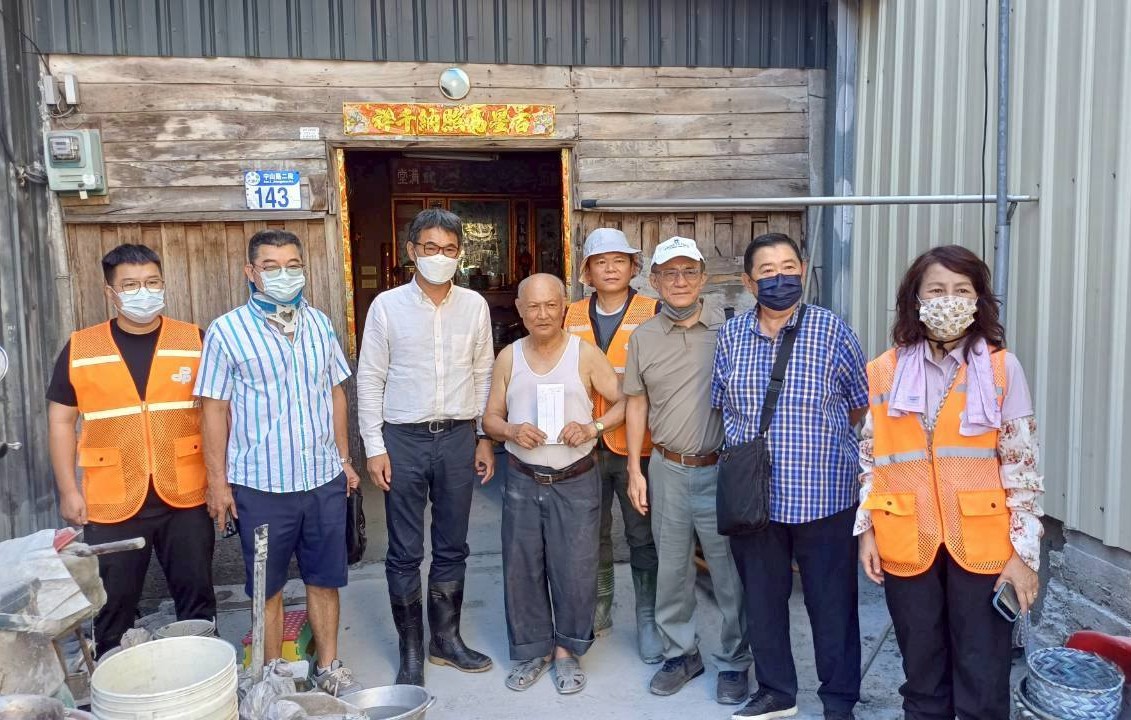 劉建國、花蓮縣黨部主委嚴献宗與善心企業家,已於瑞穗殯儀館將慰問金交至罹難者家屬手中,並親自前往受災獨居長者家中慰問。(圖/翻拍立委劉建國臉書)