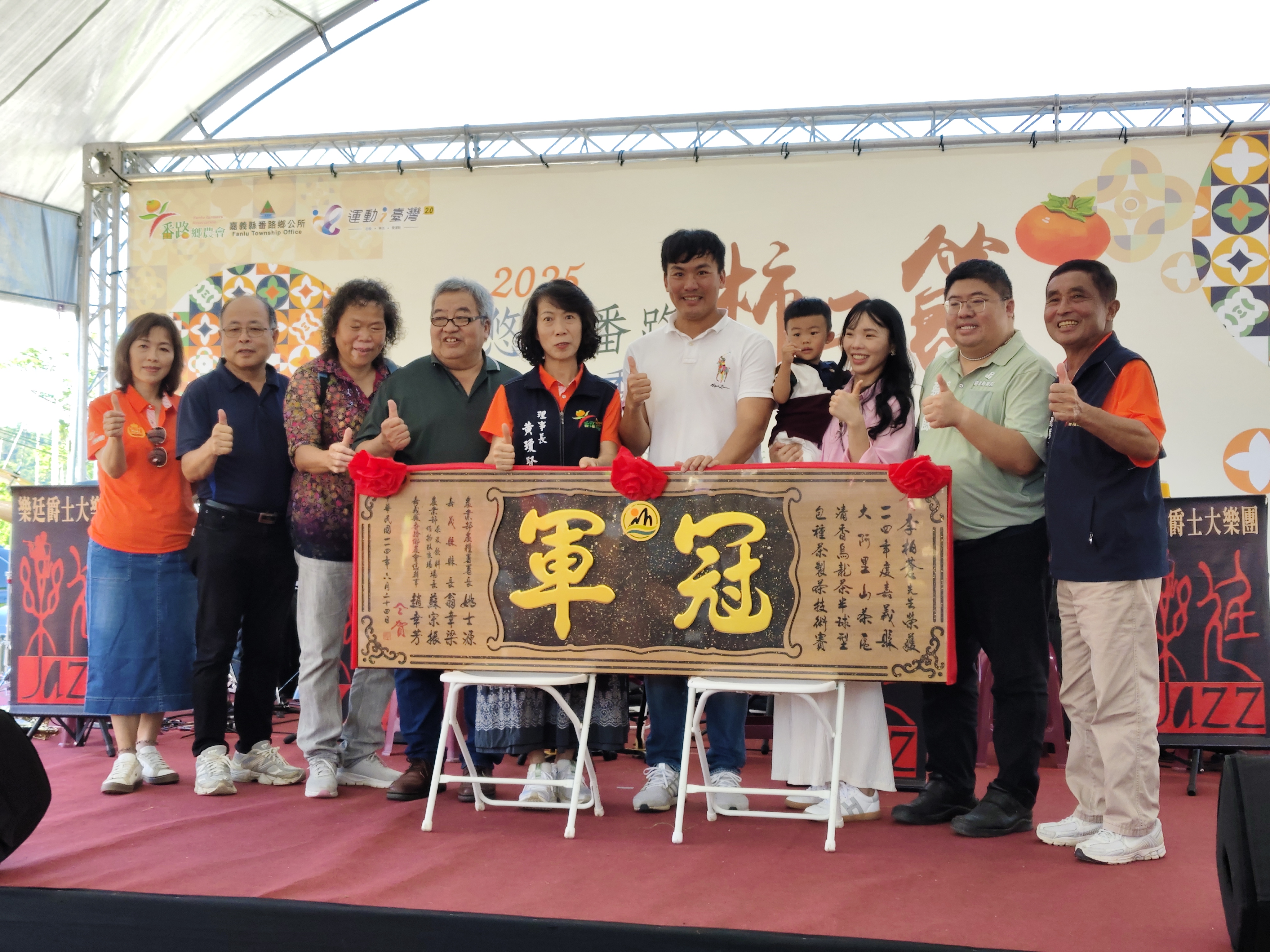 番路鄉農會柿季茶鄉魅力綻放表揚四健會員技術交換競賽優秀人員。(圖/記者任芳葵攝)農糧署南區分署長賴明陽指出,番路柿子品質與產量皆居全台之冠,農糧署將持續在冷鏈系統、產銷輔導及品牌推廣上提供協助,讓番路農產品走向國際市場。嘉義縣政府農業處長許彰敏則表示,番路柿子占全國產量七成,縣府將持續推動加工升級與地方創生,打造兼具經濟與文化的「嘉義農業品牌」。