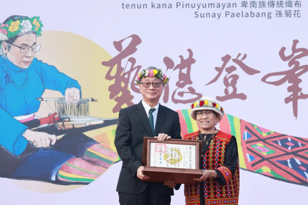 文化部表示,文化部依據《文化資產保存法》,自2009年起登錄重要傳統工藝,並認定保存者(俗稱人間國寶),2025年9月新增登錄重要傳統工藝「tenun kana Pinuyumayan卑南族傳統織布」1項,迄今已達22項30位保存者。卑南族織布技藝從遠古時代的口傳故事流傳至今,技藝繁複,是族群身份、歷史記憶與生活智慧的交織體。Sunay Paelabang孫菊花長年耕耘於傳統織布領域,技藝精湛,並致力於教學與推廣,是目前極少數能完整掌握卑南族傳統織作工序與文化意涵的重要傳承人。