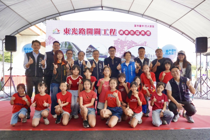 【記者林獻元台中報導】台中北屯區南北向主要幹道「東光路」首階段工程16日正式通車!為紓解松竹路及東山路車流壅塞問題,市長盧秀燕積極推動「東光路計畫道路開闢工程」,在市府建設團隊努力下,首階段「松竹路一段至南興三路」及「東山路一段至東光路892巷」路段順利完工,總經費達新台幣23.1億元。