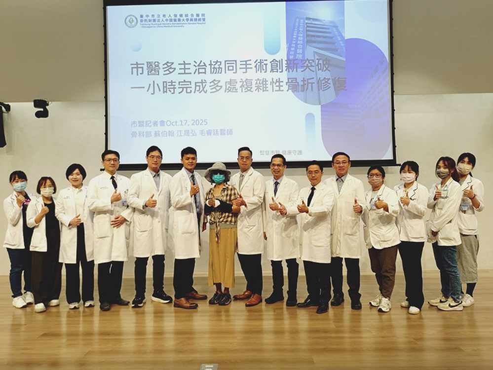 張建鈞說,市醫以創新協同手術模式為特色,整合各專科醫師團隊,將過往需單人分段完成的多部位骨折手術,轉化為多主治醫師並行執刀,讓手術時間與麻醉時間同步縮短,進而降低併發症與出血風險。此模式也減輕護理與麻醉科人員負擔,讓手術室與病房運作更有效率,成為醫療人力吃緊時代的重要解方。