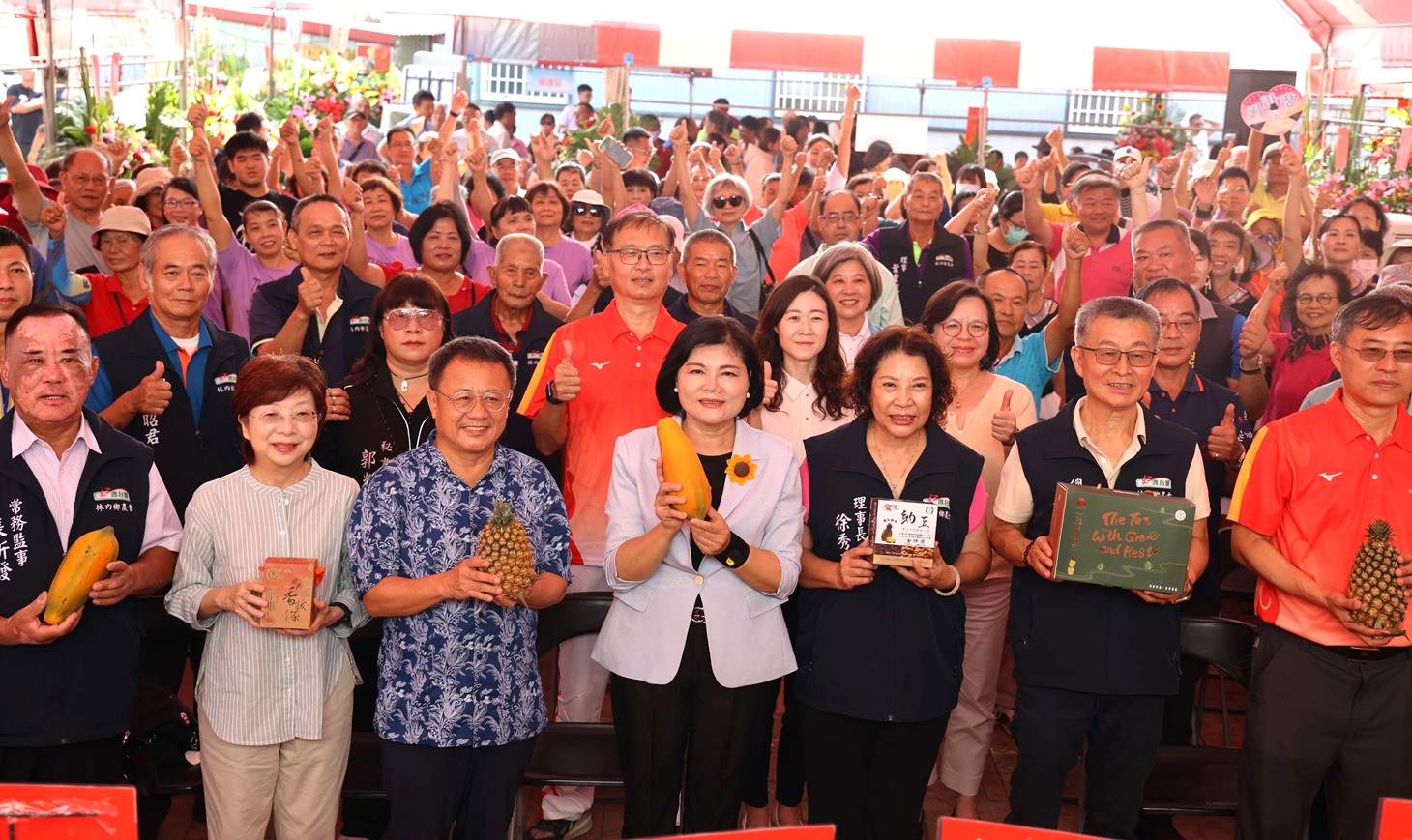 張麗善進一步指出,林內鄉農會在黃國洲總幹事帶領下,不僅積極拓展鮮果銷售,更創新推出木瓜酵素、木瓜保養品及木瓜穀物粉等多元產品,展現地方農業多角化發展成果,也感謝縣府與在地農民通力合作,讓「林內品牌」持續發光。
