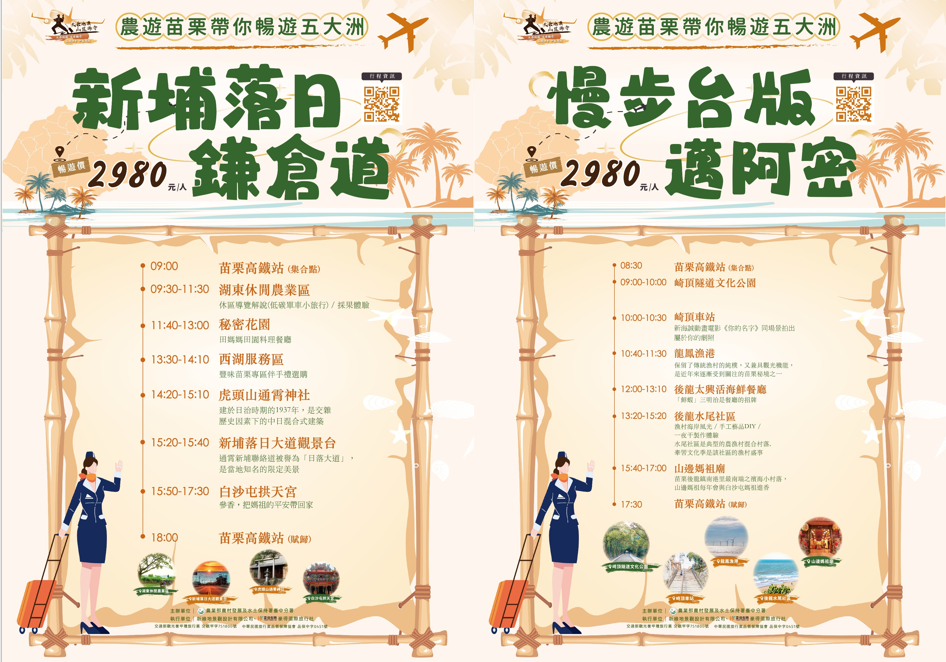 農村水保署臺中分署王志雄副分署長表示,這些遊程不僅是旅遊活動,更是一場「文化尋根與心靈療癒的旅程」。從南庄的擂茶香、泰安的烏嘎彥竹林秘境、大湖薑麻園的薑麻湯,到後龍海岸的漁村日落、卓蘭壢西坪的花香果園,處處展現農村的多樣風貌。每一條遊程落實「友善環境、低碳旅行、永續農村」的理念,讓遊客在美景與美食中,重新認識台灣農村的價值,邀您一同體驗苗栗如詩的山水與豐饒的農產。