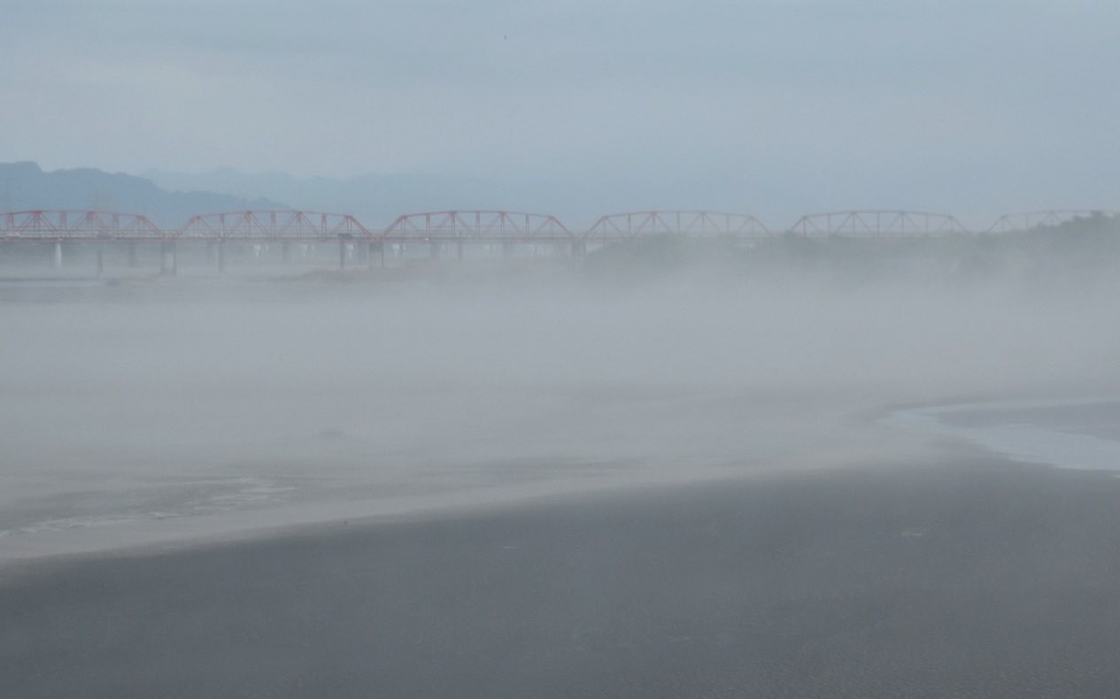 濁水溪高灘地大片細沙裸露未覆蓋,風沙隨風漫天飛舞,導致沿岸地區再陷「霧茫茫」的風沙困境。