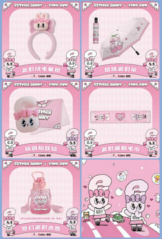 活動現場不僅設有繽紛拍照打卡點,還有期間限定「艾絲樂小兔」大型人偶驚喜現身,與粉絲們近距離互動留影。夢幻的粉紅泡泡賽道、沿途艾絲樂小兔粉紅拍照點,讓運動充滿甜美樂趣,現場還有專屬妝髮體驗與小兔人偶相見歡,從頭到腳都讓你閃閃發光。快快與最好的姊妹們相約,一起合照、一起變身、一起留下最美好的回憶,一場專屬你與姊妹們的女孩路跑盛典將就此展開!