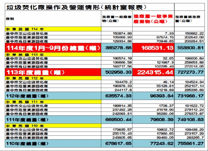 他同時追問大里掩埋場堆置量及文山焚化爐改建期程,警告若繼續黑箱操作,恐將埋下垃圾危機。「幸福城市不能用假數字堆出來,台中不能再成為垃圾政策的受害者!」