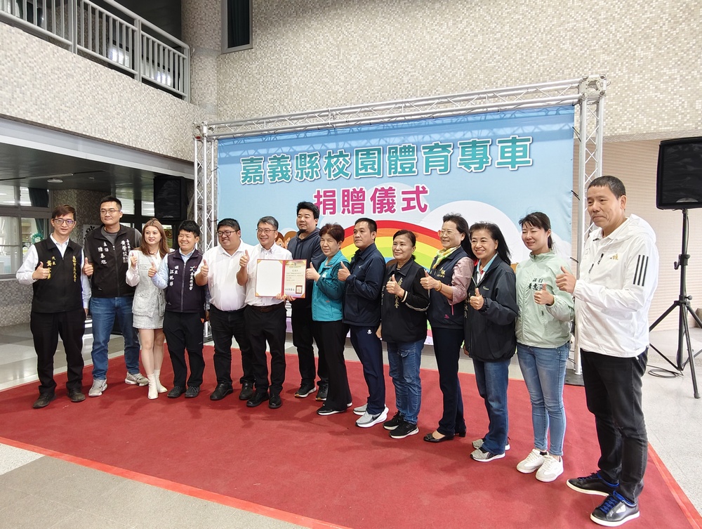 立委蔡易餘促成媒合捐贈縣內東石國中、水上國中及永慶高中3所學校體育廂型車。(圖/記者任芳葵攝)