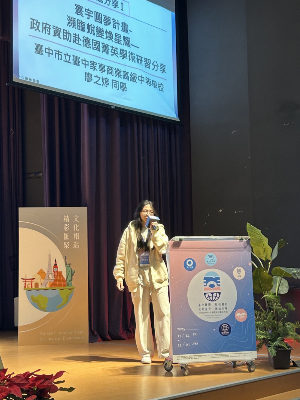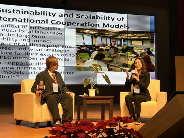 另有多位台中市師生成果發表,包括惠文國小及立人國中分享「國際筆友計畫」、明道高中「SMILE英語共學計畫」及西屯國小「概念圖式 RPG 數位學習」案例等,展現台中師生跨國合作與雙語教學成果。