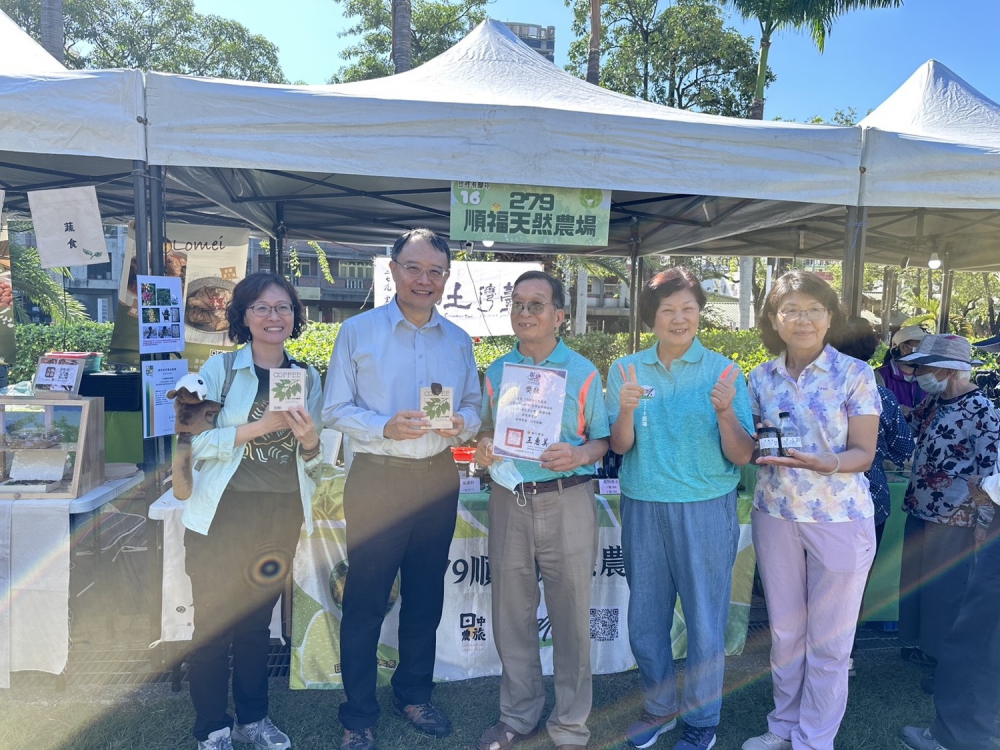 今年市集以「田裡有腳印」為主題,與社團法人慈心有機農業發展基金會攜手合作,共有100個單位參與,創下歷年新高。現場規劃七大展區,除了來自林業保育署臺中分署輔導的里山標章及友善石虎農作標章農友,更有40攤綠色保育標章農友共襄盛舉,攤位上琳瑯滿目的友善產品,從標章稻米、甜柿、葉菜類,到以綠保食材製作的熟食蔬食點心、生吐司、茶葉與多樣加工品,吸引民眾駐足選購,用「吃」的選擇實踐對土地的善意與健康永續的生活理念。