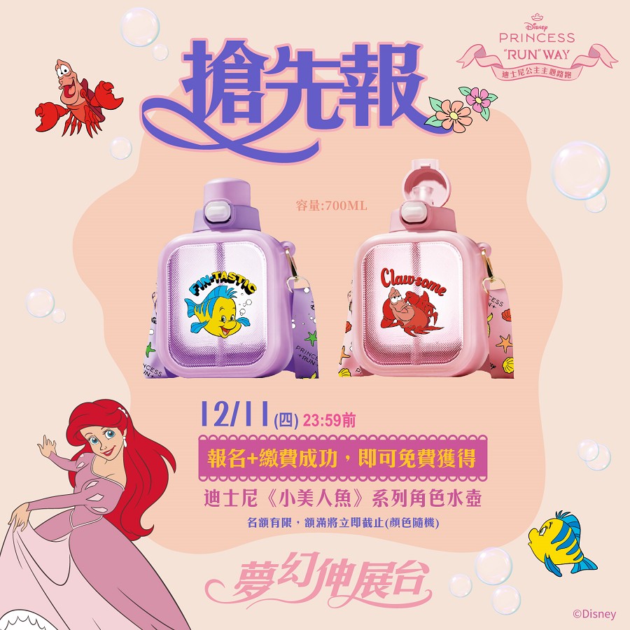 ▲搶先報名活動期間完成報名繳費就送迪士尼小美人魚系列水壺(隨機)