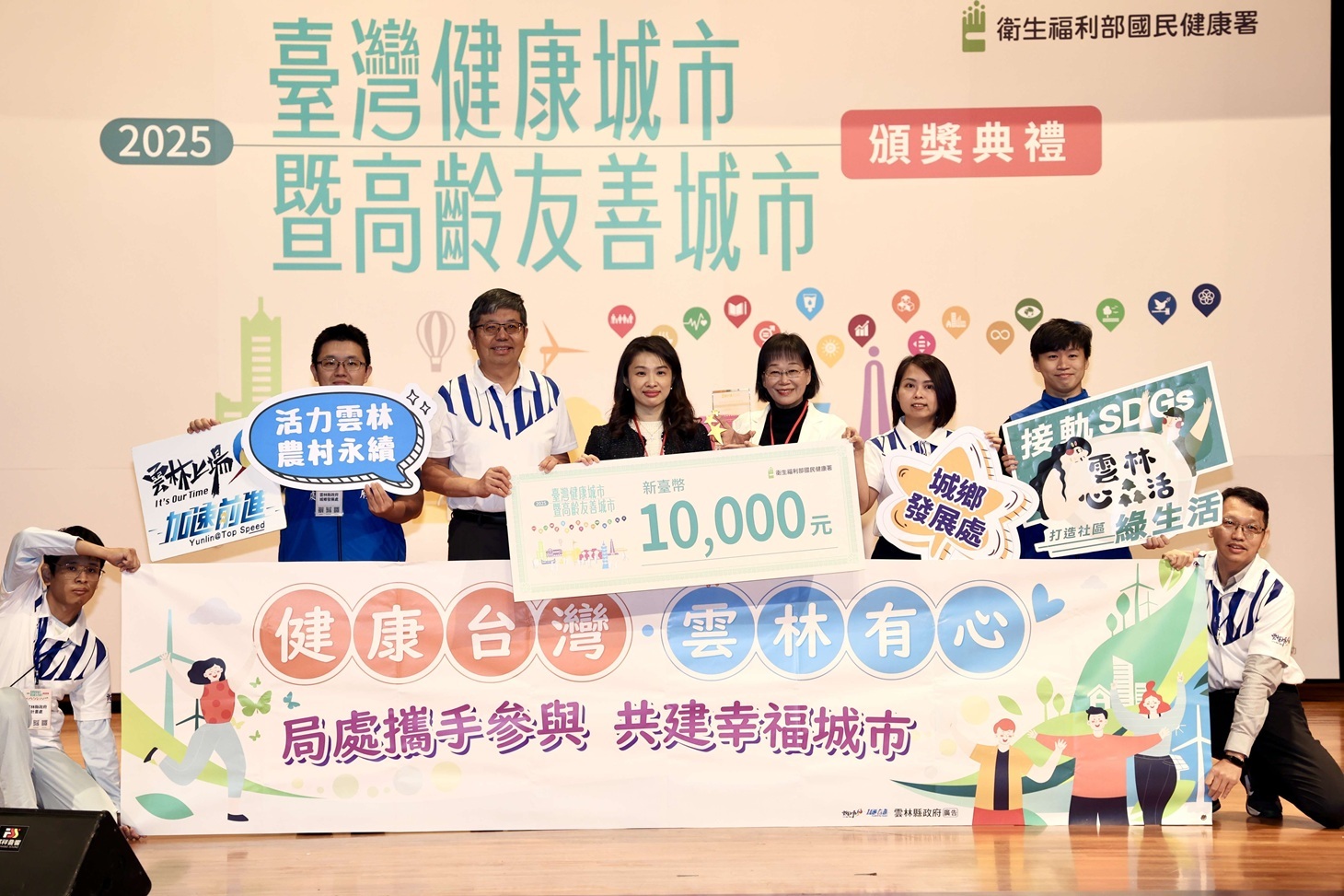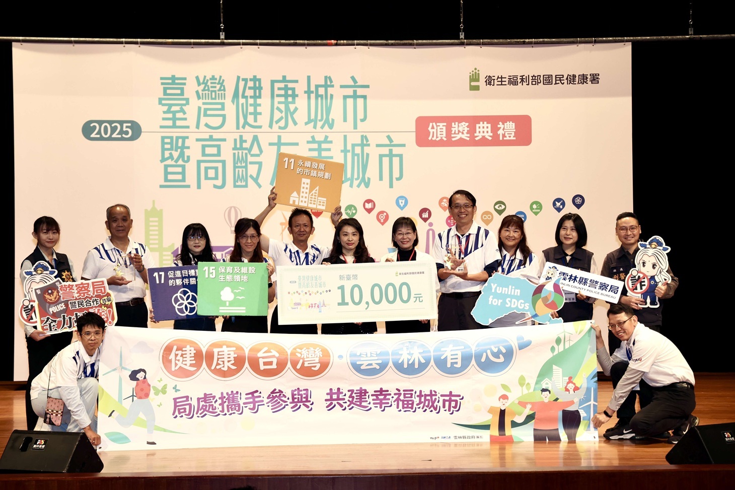 【記者蘇峯毅/雲林報導】雲林縣近年積極推動健康城市與高齡友善城市計畫,透過跨局處合作整合在地資源,並將聯合國永續發展目標(SDGs)融入治理核心,打造具地方特色的健康與永續環境。縣府參加衛生福利部國民健康署舉辦的「114年台灣健康城市暨高齡友善城市獎」表現亮眼,共獲得四大獎項與一項海報獎,再度蟬聯非六都縣市第一。今(28)日由副縣長謝淑亞代表縣府北上接受表揚。