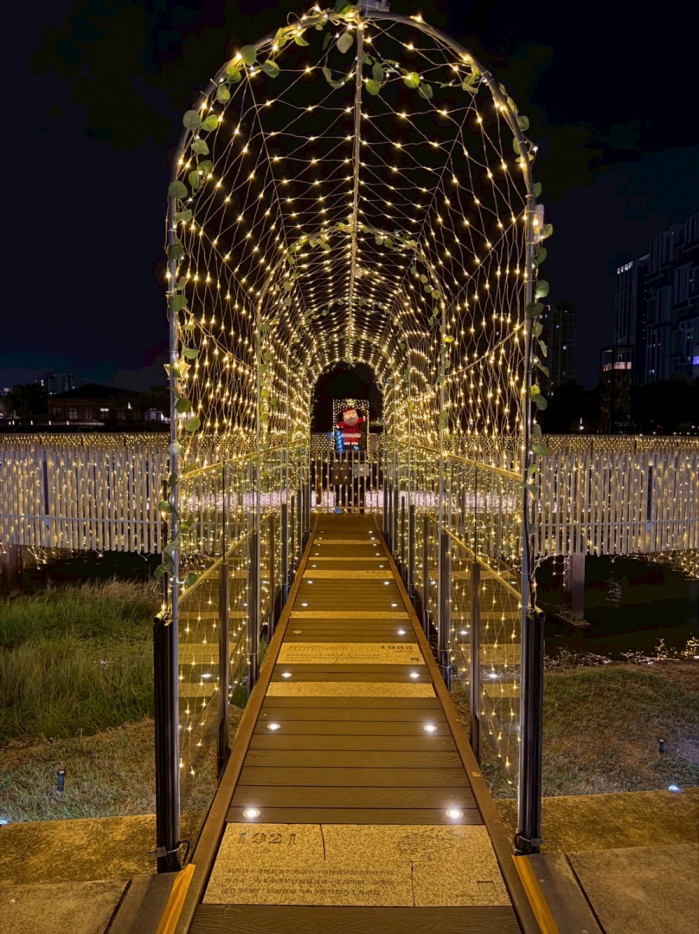 湧泉公園則於滿月指環觀景步道周邊規劃「光之迴廊」,結合可愛小動物燈飾及手捧糖果的聖誕老人,增添活潑趣味,歡迎民眾前來打卡拍照,感受濃濃節慶氣息。