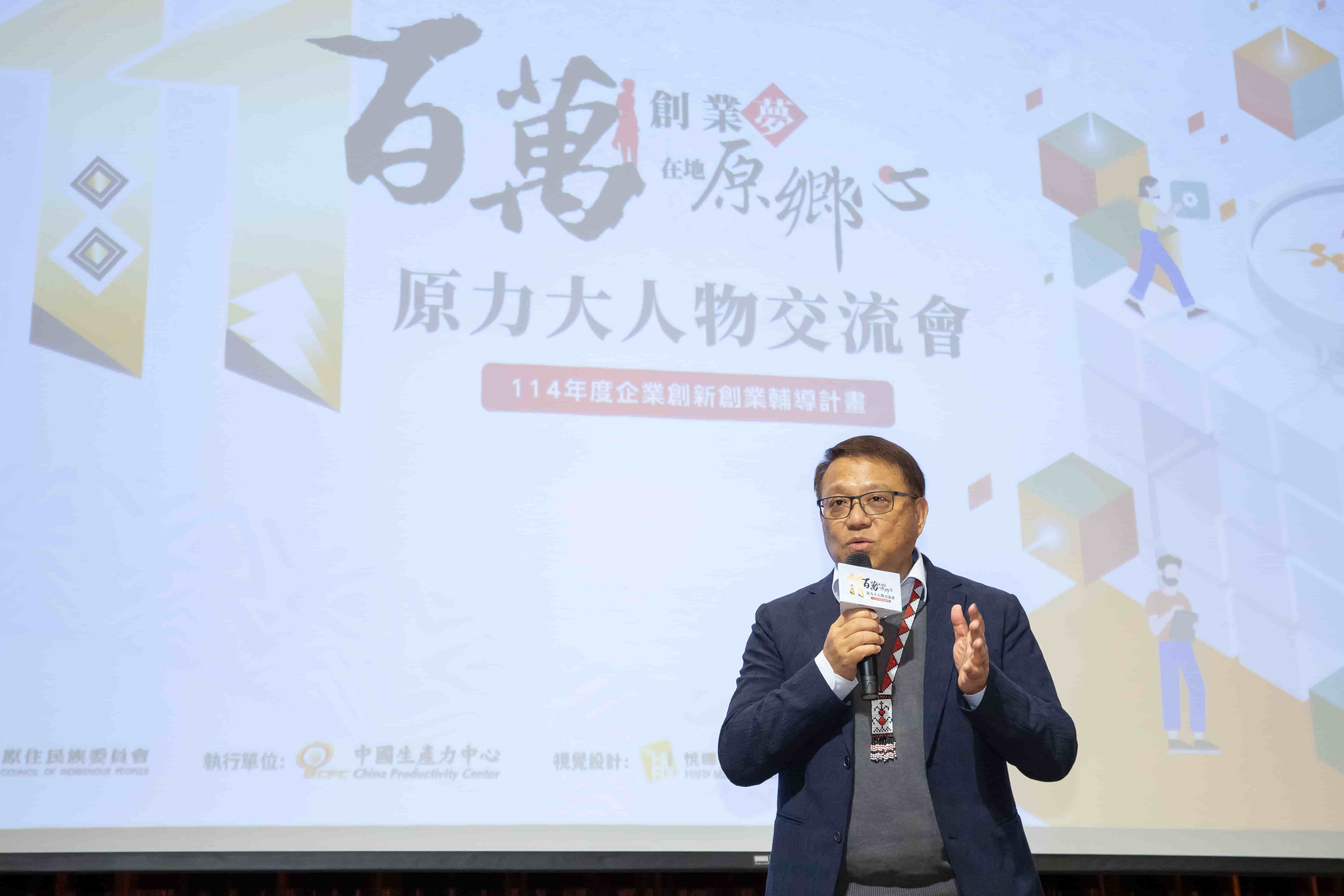 今年邁入第11屆的百萬創業計畫頒獎典禮,邀請歷年受扶植企業齊聚一堂。杜副主委鼓勵所有團隊把握交流機會建立人脈、交換市場經驗,攜手持續擴大原民產業的影響力。