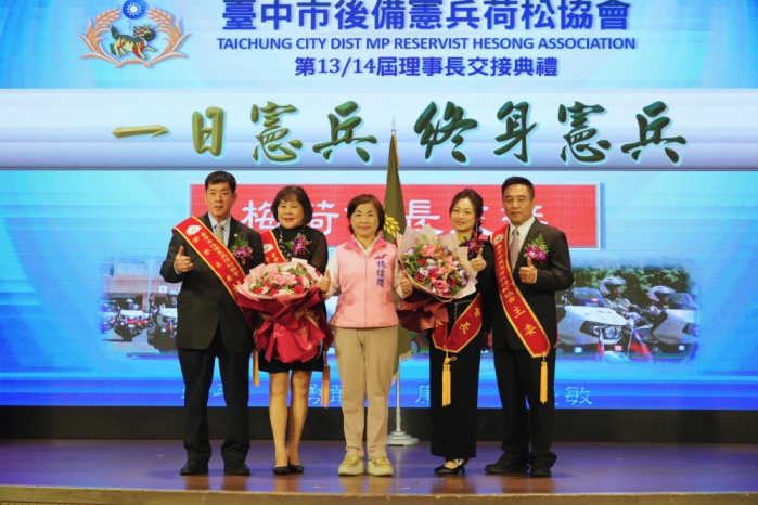 【記者林獻元台中報導】台中市後備憲兵荷松協會與梅荷夫人聯誼會長期投入社會公益,並積極協助市府提升災害防救能力,為台中的發展與安全貢獻良多,7日舉行第十三、十四屆協會理事長暨聯誼會長交接典禮,現場氣氛熱絡。