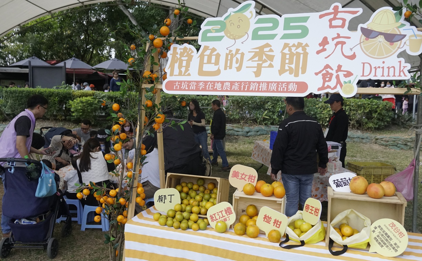 今年活動以「橙色的季節」為主題,展出柳丁、椪柑、玫瑰橙、紅江橙、帝王柑、茂谷柑等當季柑橘,並規劃「柑橘食農館」與「古坑飲特調吧」兩大主題展區。其中,柑橘食農館透過品種展示與故事牆,介紹各類柑橘的產季特色與風味差異,讓民眾深入認識古坑柑橘產業;古坑飲特調吧則推出以柳丁與甜橙調製的限定飲品,民眾於市集消費達指定金額即可兌換,增添活動趣味。