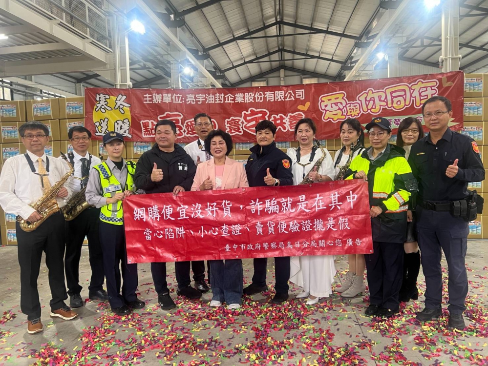 【記者林重鎣台中報導】台中市大肚區在地企業「亮宇油封企業股份有限公司」舉辦「點亮愛心.寰宇共善—愛與您同在」2025年寒冬送暖活動,日前溫情登場。董事長陳春甘女士不僅慷慨解囊,更號召上百家企業、社團及善心人士,募集600份民生物資發放弱勢家庭;大肚分駐所員警更化身「守護天使」,與領取物資民眾面對面叮嚀防詐,讓這份愛不僅暖心,更讓人安心。