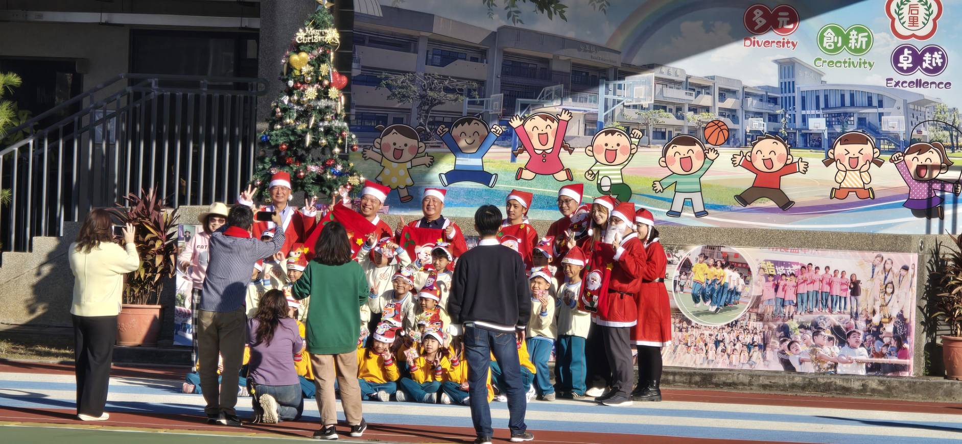 「暖心聖誕日」跳脫傳統贈禮形式、強調參與感與儀式感、所有服裝與糖果均由家長志工自籌經費製作、此類由社區力量自主發起的校園活動、展現公民參與教育的積極能量、值得肯定與推廣、寒冬雖至、校園裡的紅衣身影與甜蜜笑語、已悄然播下信任與共好的種子。