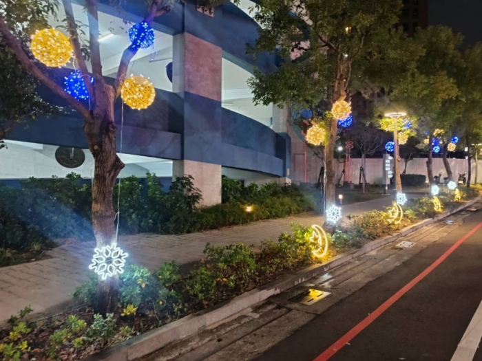 位於大里區的東榮停車場,則延續其綠建築與社區共融特色,運用藍白色系基調,搭配耶誕燈飾、雪人與麋鹿擺設,讓市民在行程途中也能感受到節慶的喜悅。交通局表示,透過跨區域的耶誕佈置,讓整座城市在歲末時節都籠罩在歡樂溫馨的氛圍中。