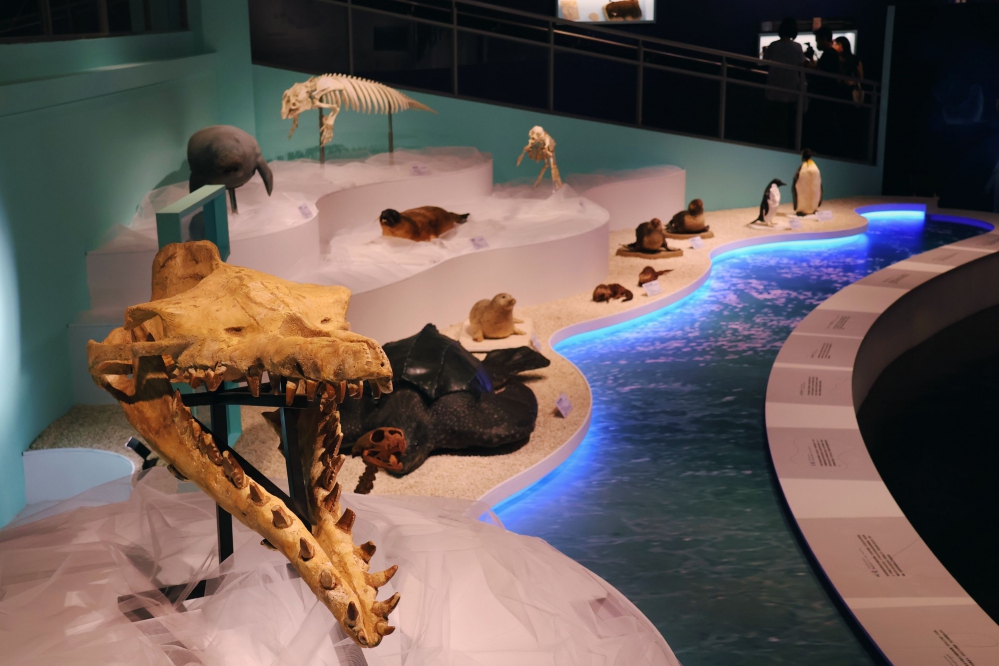 科博館館長黃文山表示,作為同屬教育部轄下的自然科學類博物館,科博館與海生館在研究面向上看似不同,實則高度互補。從科博館的生物學與地質學研究,到海生館專精的海洋資源科學,雙方早已在專業領域中累積多年交流與合作經驗,近年來的合作成果,包括2023年科博館推出的《在海之濱》特展、海生館成功完成全臺首座藍鯨骨骼標本吊掛展示,以及2025年海生館推出的《重返海洋》特展等,皆展現兩館合作的具體足跡與整合成效。