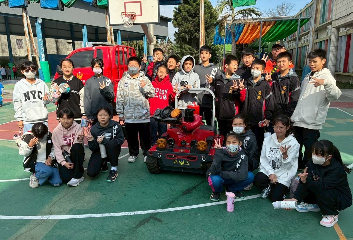 北五分隊於2日前往麥寮鄉橋頭國小舉辦防火教育活動,以「電氣使用安全-五不一沒有」為主題,將防火防災觀念向下扎根。(圖/雲林縣消防局提供)
