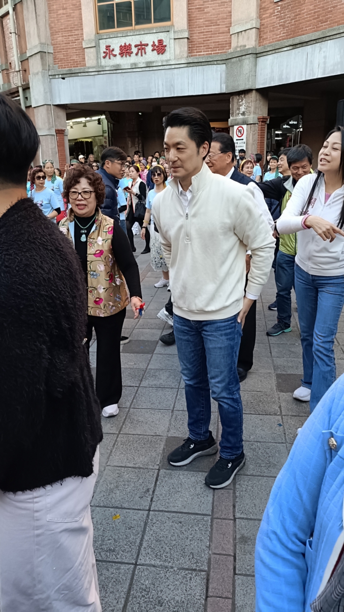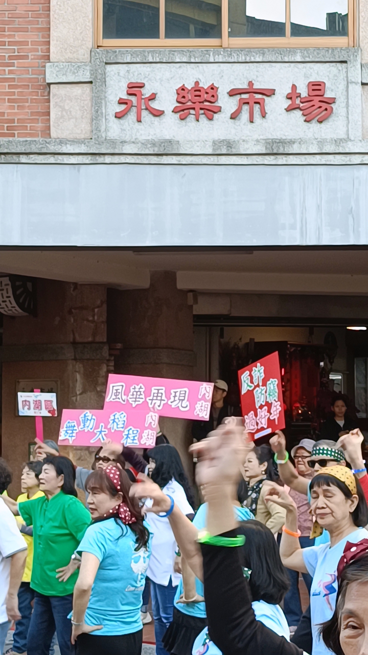 2026-01-04下午4:30開始在台北市大同區永樂市場前廣場舉辦反偷竊,反詐騙活動現場邀請百人大型團體舞蹈活動,現場除邀請市長蔣萬安共舞及合照,也邀請附近相關主辦協辦的民代,警政,社福,文山,內湖大同等各社區,市場團體及民眾參加,參加者雖屬社區中老年齡婦女居多,但個個精神抖擻花枝招展,氣氛熱烈愉悅,歡樂不輸年輕人,估計現場約有超過400多位舞者,共有十一個隊伍與市長共舞參加,會後各隊伍並分別輪流與市長合照。