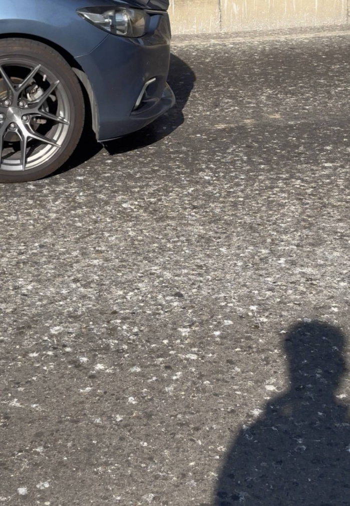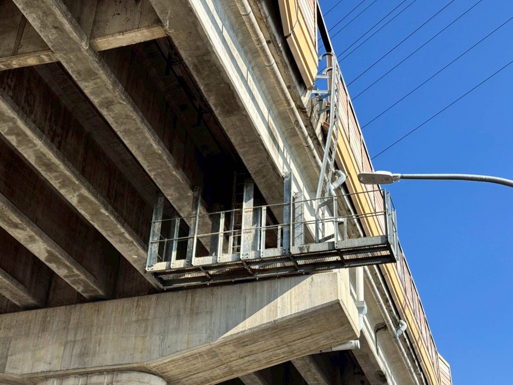 會勘發現國道4號橋下禽鳥長期停棲,排泄物累積於國豐路三段路面,且這副景象可追溯至2019年街景就存在,屬可預見之道路安全風險。用路人行車安全不容忽視,邱愛珊嚴加要求相關單位責無旁貸應盡快改善。