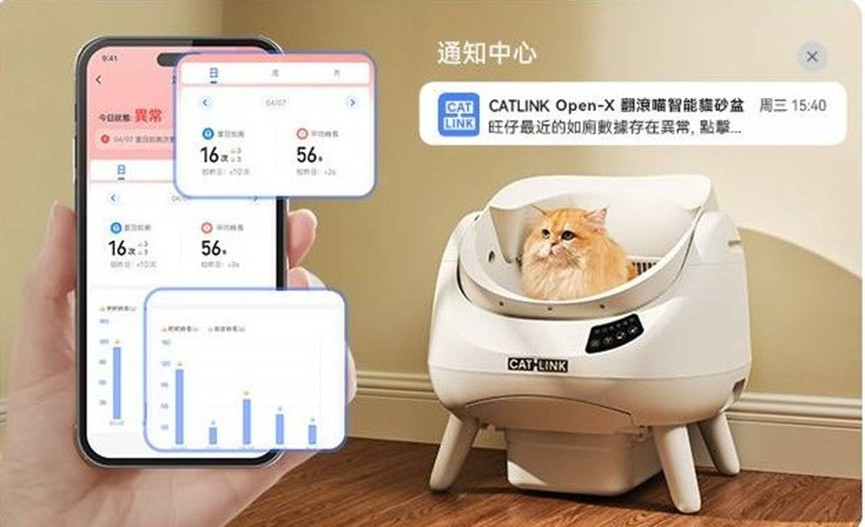 CATLINK表示,透過專屬APP,飼主可即時查看每隻貓咪的如廁次數、停留時長與行為變化;當系統偵測跳出異常模式(如廁頻率突然增加、停留時間過長等),便會主動提醒飼主,協助愛貓的貓爸貓媽及早留意泌尿系統或腸胃不適等潛在健康問題。