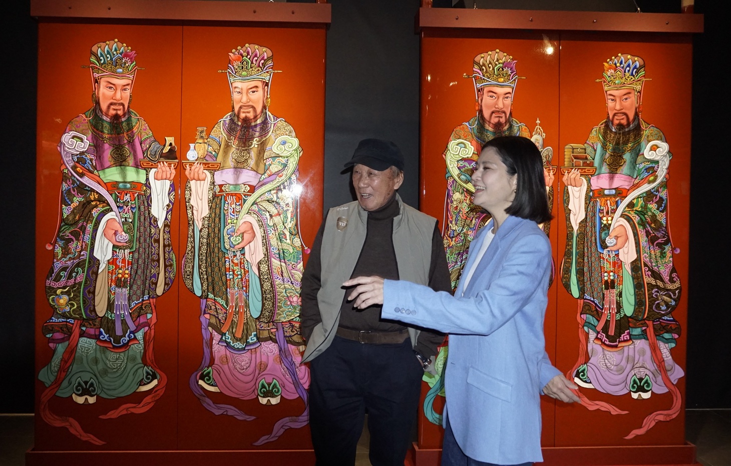 文化觀光處說明,洪平順的門神彩繪以細膩的面部刻畫與光影運用著稱,使門神形象呈現立體且富張力的神情。展覽依角色分為「威儀之相」、「文采之容」、「侍禮之姿」三大單元,完整呈現武將、文官與侍從等不同門神形象,展現其融匯古今、中西合璧的藝術風格。