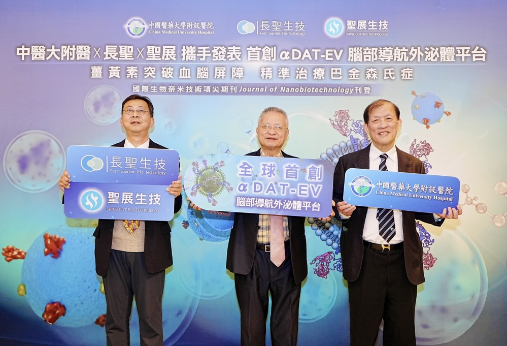 【記者張原銘、張皓傑台中報導】中國醫藥大學附設醫院(中醫大附醫)院長周德陽研究團隊,近期與長聖生技、聖展生技共同發表新型外泌體藥物遞送技術。該研究針對中樞神經系統(CNS)藥物難以穿透血腦屏障(BBB)的限制,開發出名為「αDAT-EV」的腦部導航外泌體平台。此項研究成果已獲國際學術期刊《Journal of Nanobiotechnology》刊登。
