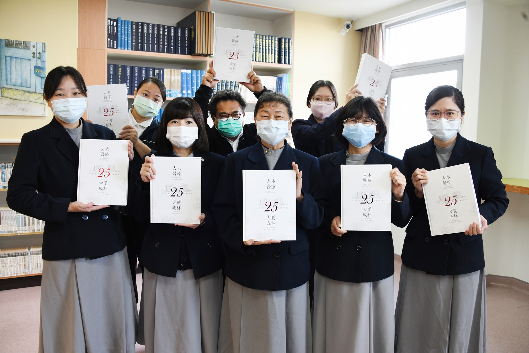 演繹中的大型法具,象徵醫院深耕二十五年的《大林慈濟醫院25周年—大愛成林》專書,更令人耳目一新。此書由院長一聲令下,由公共傳播室主任帶領全員動員,不分晝夜地籌劃與製作,分工撰寫文稿,並邀請多位外聘寫手與《經典》雜誌協助編輯,歷經半年多的時間才得以完成。全書共477頁,首刷3,200本,記錄了醫療團隊秉持「為佛教、為眾生」的理念,精進醫療技術、守護生命的點滴歷程。