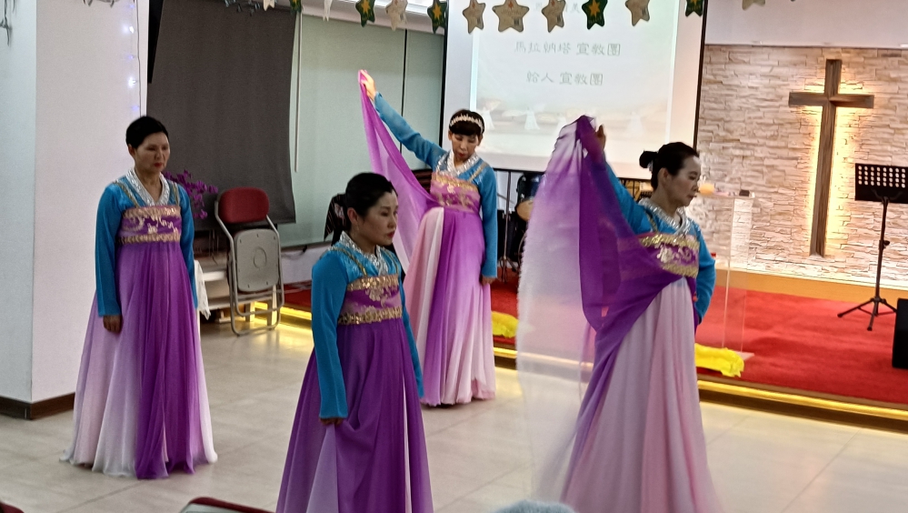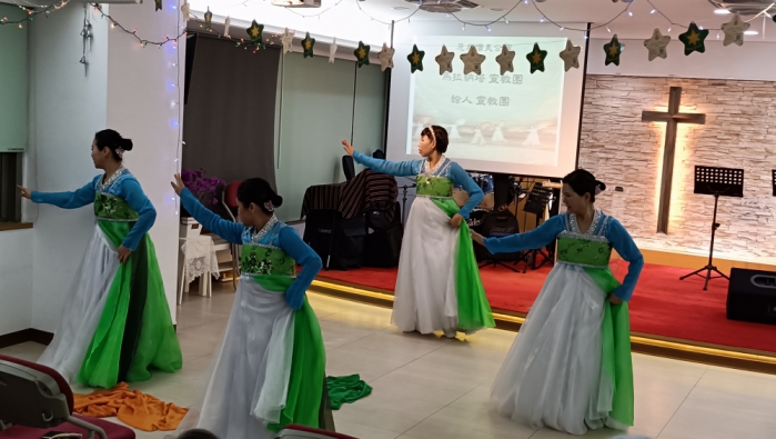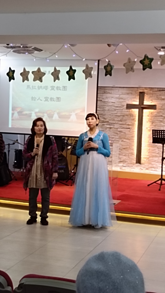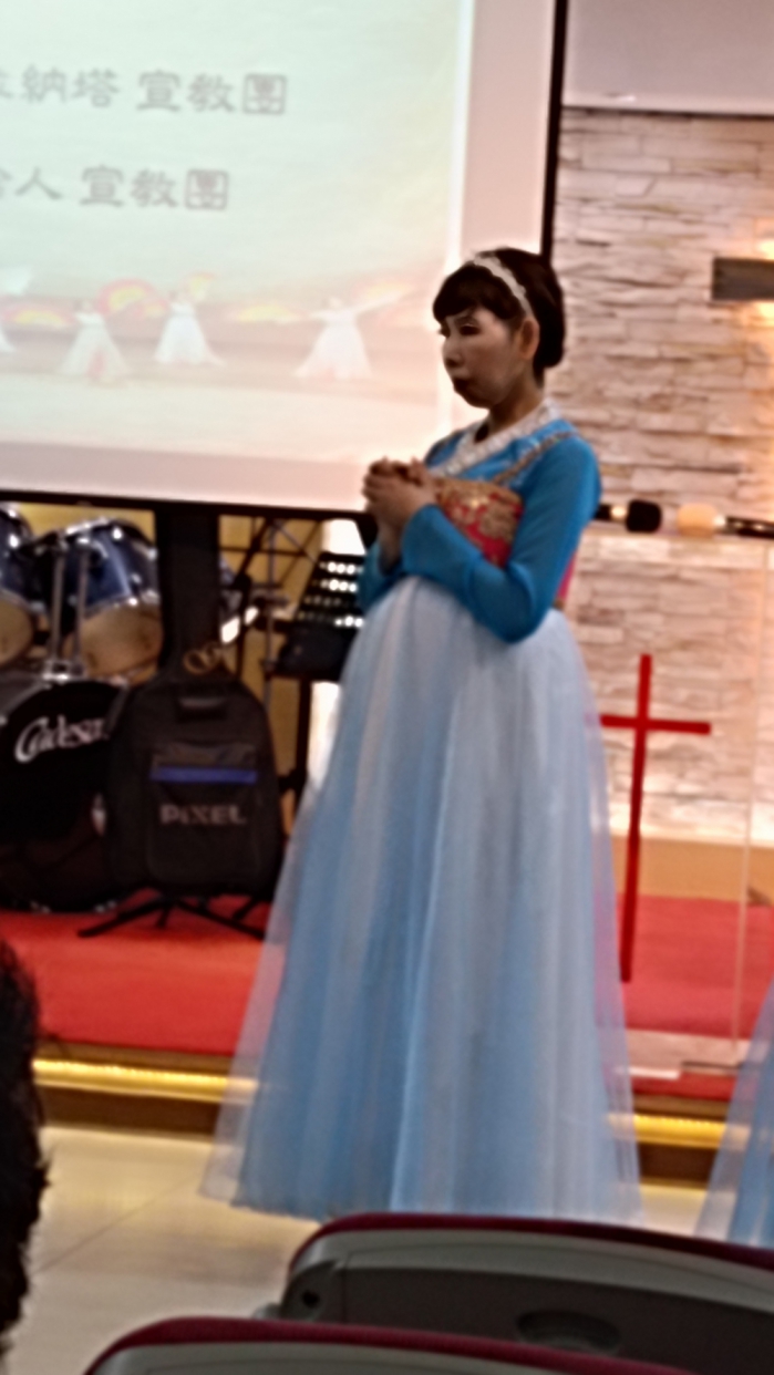 今日晚間一批兩組來自韓國首爾的瑪拉納她塔宣教團七人,在也是韓國人,長在宜蘭開教會的金牧師帶領下,從前天甫下飛機第二天就遠赴宜蘭員山榮民醫院去探訪及表演舞蹈給慰問病患,下一站將去濱海公路旁東北角禱告山,今晚她們選擇到新店神召會,一起參加週三晚禱與再次穿上韓式傳統服裝,來碧潭神召會表演她們精湛純熟的舞藝,供主內家人們欣賞,她們美麗謙卑有禮,敬業的舞技絕不輸專業舞者,獲得滿堂喝采。